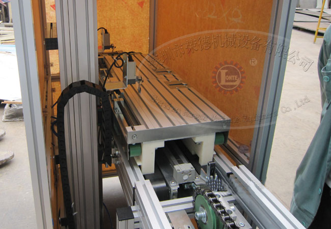 高鐵門自動(dòng)裝配流水線技術(shù)優(yōu)勢(shì):針對(duì)高鐵門驅(qū)動(dòng)部分,尺寸長(zhǎng)短不一且很沉重,不好定位,設(shè)計(jì)一套能自動(dòng)流動(dòng)工裝小車,小車采用一組帶手動(dòng)離合驅(qū)動(dòng)小車,一組被動(dòng)小車,且產(chǎn)品放到主驅(qū)動(dòng)小車,通過一個(gè)升降壓板壓緊產(chǎn)品的底板(可適應(yīng)2-6mm的底板),另一組被動(dòng)小車依產(chǎn)品長(zhǎng)度調(diào)到合適位置,由升降壓板壓緊定位好進(jìn)行產(chǎn)品組裝,組裝一部分后,由輸送帶送至下一站,進(jìn)行下一道工藝組裝,一共進(jìn)行9道工序組裝后,產(chǎn)品取下,工裝小車由提升機(jī)送至下層返回輸送帶,從另一頭起點(diǎn)提升循環(huán)使用。