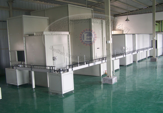 手機外殼噴涂線(spindle噴涂線): 靜電除塵、噴涂、烘干全自動流水線作業(yè),用人少,適合批量連續(xù)生產(chǎn),產(chǎn)量高、涂層面均勻;全封閉無人操作噴涂作業(yè);生產(chǎn)合格率高,品質(zhì)穩(wěn)定;輸送鏈條與軌道接觸點配置軸承配合精準(zhǔn)的軌道,運轉(zhuǎn)時輕快順暢、平穩(wěn)不抖動。