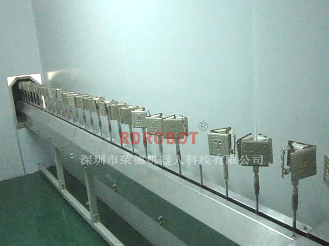 五金工件經(jīng)過人工/自動除靜電除塵裝置,消除殘留在工件上的靜電荷和灰塵,為了使每一工件的各部位都能徹底除塵,輸送鏈在該工位設(shè)有自轉(zhuǎn)裝置,因此,工件的自動靜電除塵是在旋轉(zhuǎn)中進行的,除塵效果良好,靜電除塵器為進口產(chǎn)品,特性:良好涂裝、控制各環(huán)節(jié)缺點;