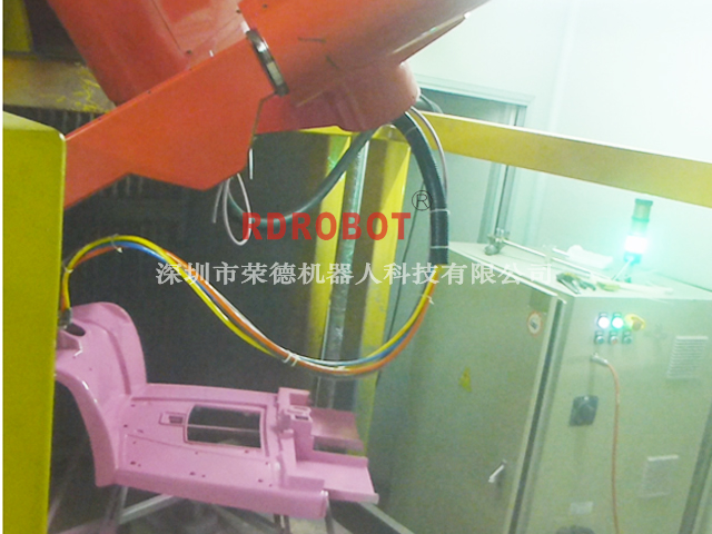 1. 采用目前世界上最前沿的技術-中空手腕,機器人的手腕上安裝末端工具的法蘭,采用中空結構的形式,使得各種管纜費穿整個手腕;2.自主研發(fā)且通過深圳自主創(chuàng)新產品認定并獲得國家科技部創(chuàng)新立項的高性能噴涂機器人;3.各部位轉動關節(jié)主要通過伺服馬達帶動精密減速器驅動,任意空間直線和圖標;4.數(shù)字涂裝:通過數(shù)字化參數(shù)轉化成模擬量電信號輸出,氣動比例閥接收該信號,轉變成氣壓變化,通過氣壓控制噴涂的形狀、氣流速度、油漆流量;5.體積小、工作范圍大、速度快、精度高,可與轉臺、滑臺輸送鏈系統(tǒng)等輔助設備集成作業(yè)。6.柔性大,可實現(xiàn)外表面和內表面的噴涂。7.可按工件軌跡噴涂,可省涂料;8.設備利用高,基本上所有產品都適用;9.可以與輸送帶配合作動態(tài)同步跟蹤噴涂,提高生產效率;10.各個軸傳動沒有直線運動部件,不會產生粉塵掉落,適合無塵噴涂;機器人技術參數(shù) 機器人控制柜規(guī)格 機器人工作范圍榮德噴涂機器人技術特點1.噴涂精確,正常運行時間長、漆料耗用省、工作節(jié)拍短,可24小時不間斷工作,可靠性高2.噴涂速度快,噴涂均勻,依工件變化自動調整噴槍高低、前后、角度位置,噴涂大小控制靈活,360度全方位無死角噴涂。3.機器人防爆,環(huán)保,安全性能高,操作控制簡單易學。4.噴涂機器人可以同時噴涂2--5種不同的產品,一臺抵多臺。5.噴涂機器人壽命長,無易損件,保養(yǎng)簡單,比五軸噴漆臺少了導軌、皮帶等易損件;6.程序可存儲300組,可用U盤拷貝程序,管理方便簡單;7.對運動軌跡轉角處,可用圓弧過濾功能,在直線末端不用停止,直接圓弧過濾到下一條線,速度沒停,提高了效率,也減少了起停沖擊。8.對運動軌跡可任意加噴槍觸發(fā)器,按產品需要加噴涂位置開關槍,減少涂料浪費。