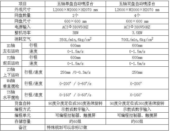 榮德六軸自動(dòng)噴涂機(jī)技術(shù)參數(shù)